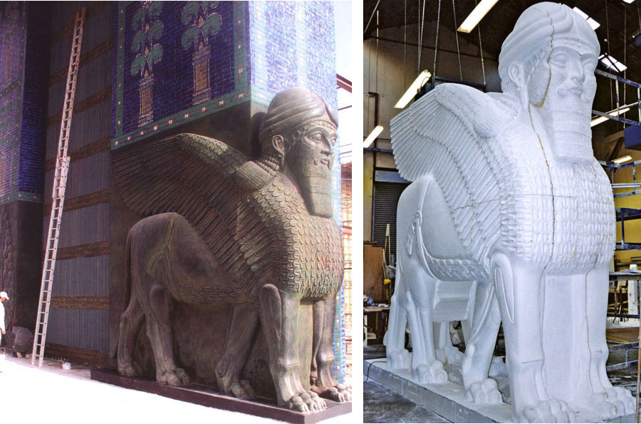 Babylon gates | pair of 'gatekeeper' statues, approx. 25' high, | sculpted in polystyrene, cast into fibreglass and shipped to the location in Marrakech, Morocco |