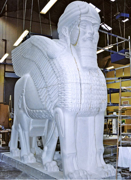 One of a pair of 'gatekeeper' statues, approx. 25' high, that footed a giant entraceway. Sculpted in polystyrene. Seen here in the studio, unpainted