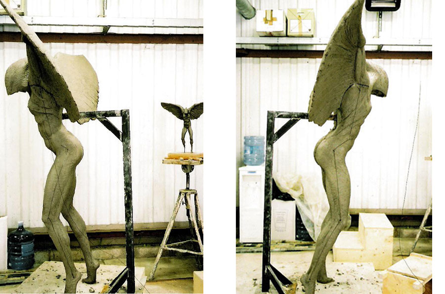 Hooded angel figure | sculpted in clay and cast into fibreglass