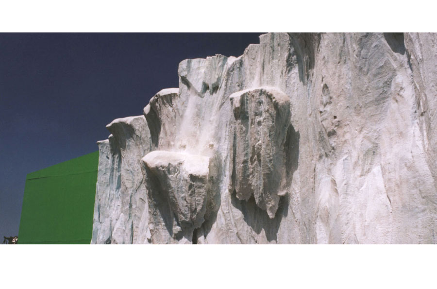 Glacier for green screen sequence | James Bond snowboards over the edge, causing an avalanche | sculpted in polystyrene