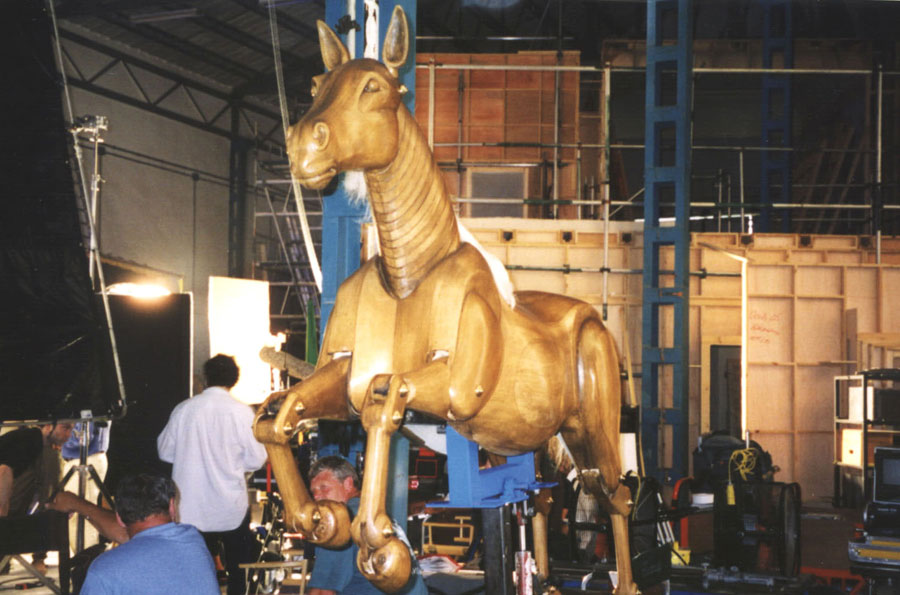 Wooden horse mannequin with posable legs | body and head modelled in clay and cast in fibreglass | legs, hooves and neck built up out of |
