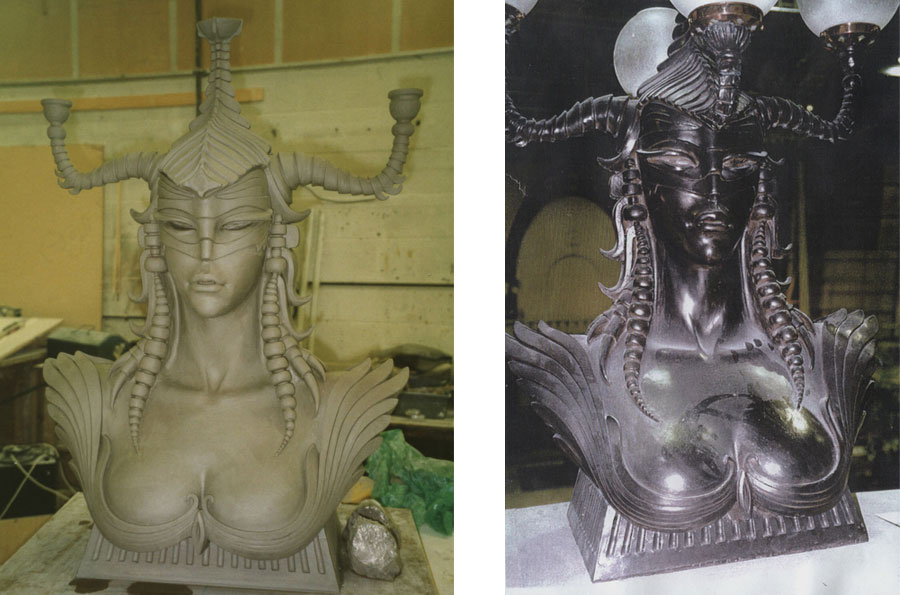 Female head and shoulders, cast into repeats and used to decorate the great hall. Sculpted in clay and cast into fibreglass.