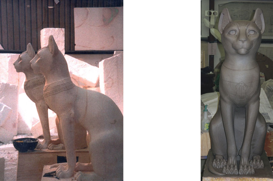Egyptian styled cats | modelled in clay and cast into plaster