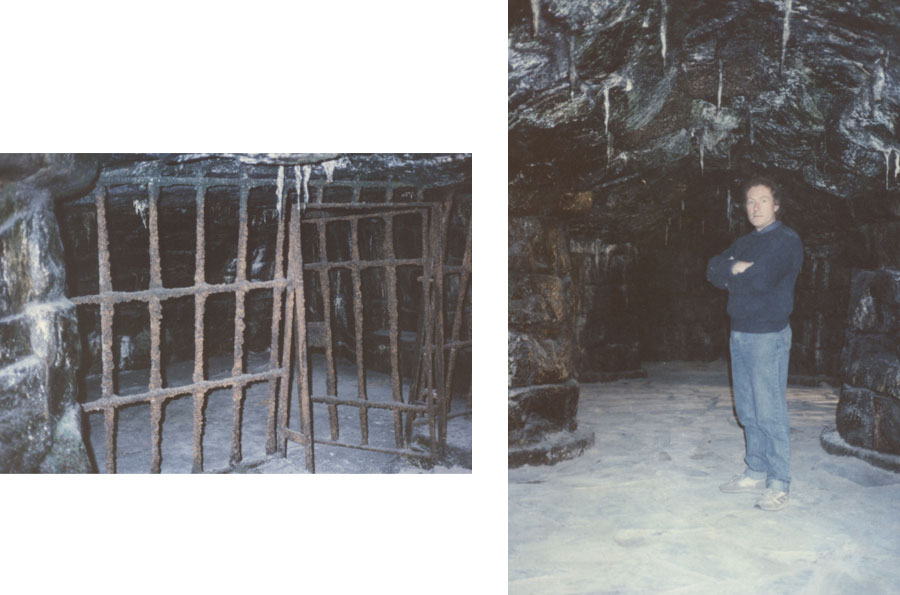 Dungeon walls clad with stone | sculpted in polystyrene | on set at Elstree Studios